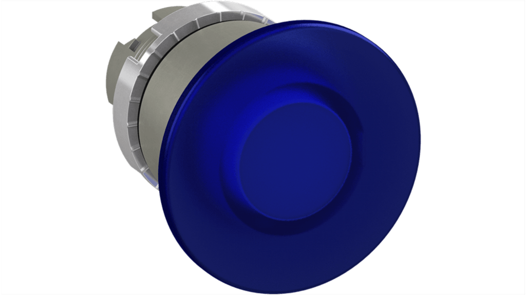 Pulsante a fungo instabile ABB, colore blu, attuatore da 40 mm, grado di protezione IP66 sul lato anteriore, serie 1SFA1. Forma a fungo, attuazione momentanea. Prodotto progettato per applicazioni industriali.