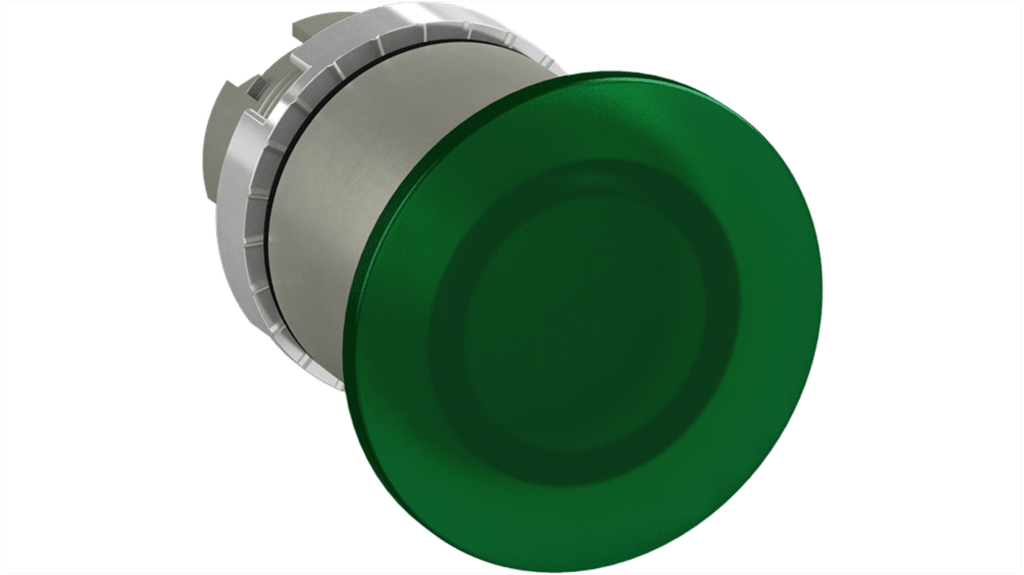 Pulsante a fungo mantenuto, colore verde, attuatore da 40 mm, grado di protezione IP66, serie 1SFA1, forma a fungo, attuazione a pulsante. Marchio ABB, codice costruttore 1SFA184562R9102.