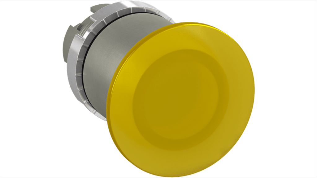 Pulsante a fungo mantenuto, attuatore da 40 mm, colore giallo, grado di protezione IP66 sul lato anteriore. Serie 1SFA1, forma a fungo, attuazione a pulsante. Prodotto marchiato ABB, codice costruttore 1SFA184563R9103.