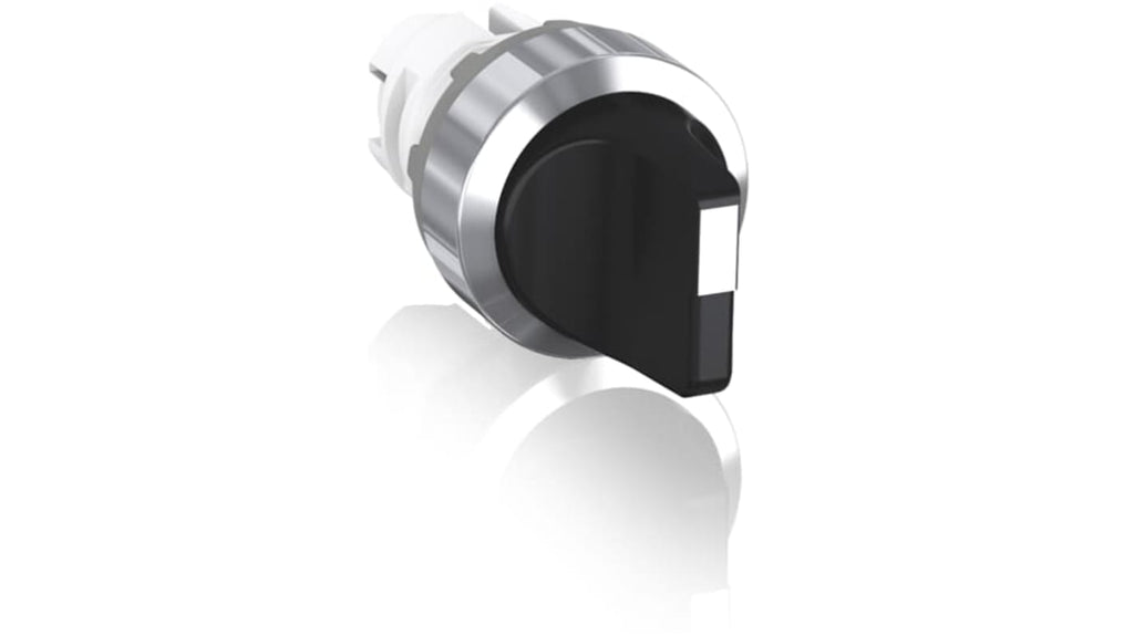 Selettore modulare ABB, 2 posizioni, impugnatura corta, realizzato in plastica cromata, colore nero, non illuminato, grado di protezione IP66, serie M2SS2.