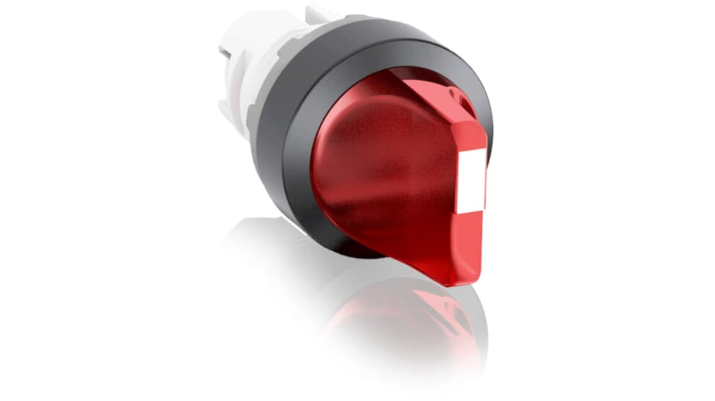Selettore modulare ABB, 3 posizioni, impugnatura corta, colore rosso acceso, materiale plastica nera, illuminato, grado di protezione IP66, serie M3SS1.