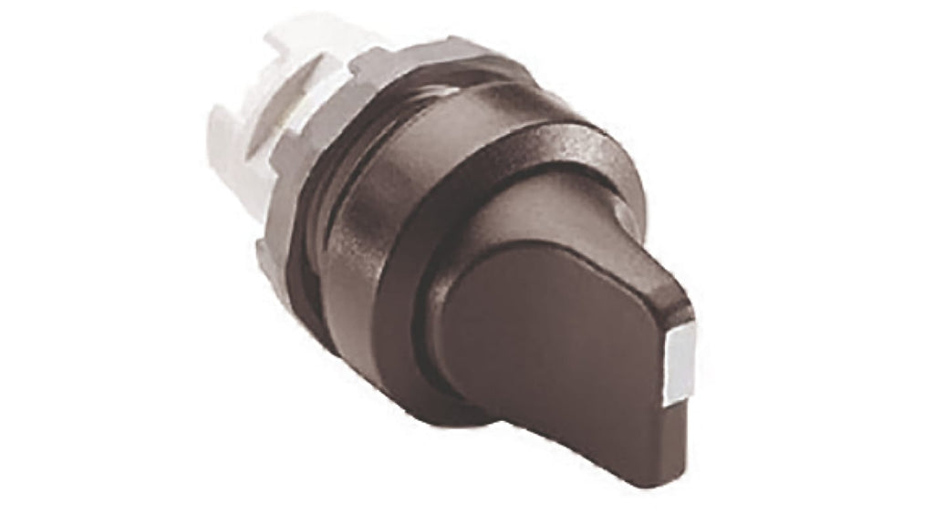 Selettore ABB Modular, 3 posizioni, diametro foro 22 mm, impugnatura corta nera, non illuminato, attivazione con ritorno a molla al centro, angolo di corsa 45 gradi. Disponibile in versioni momentanee o continue. Prodotto della serie ABB Modular, compatibile con apparecchiature e accessori della gamma.