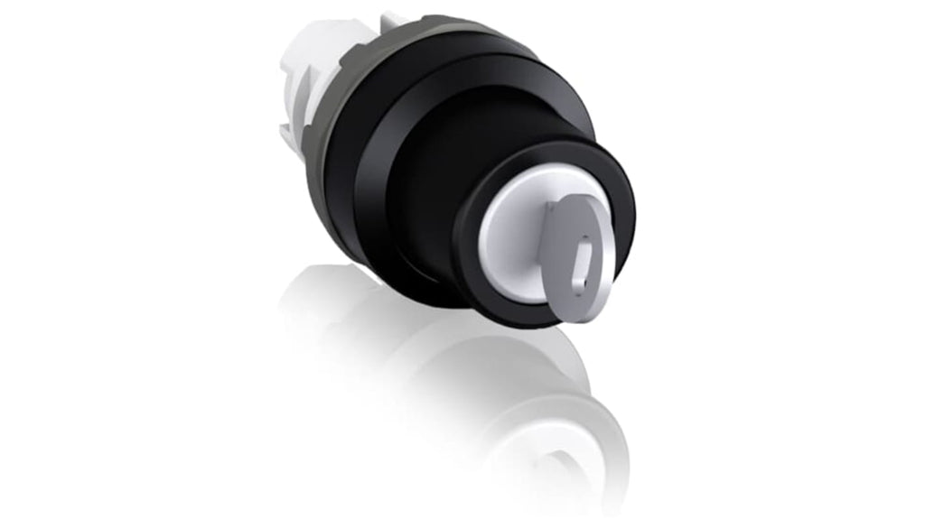 Selettore a chiave modulare a 2 posizioni, non illuminato, funzione mantenuta, colore nero, attuatore a chiave, grado di protezione IP66, cornice in plastica nera, durata meccanica 0,5 milioni di cicli, diametro foro 22,5 mm, attivazione dell'interruttore continua, tipo chiave piatto.