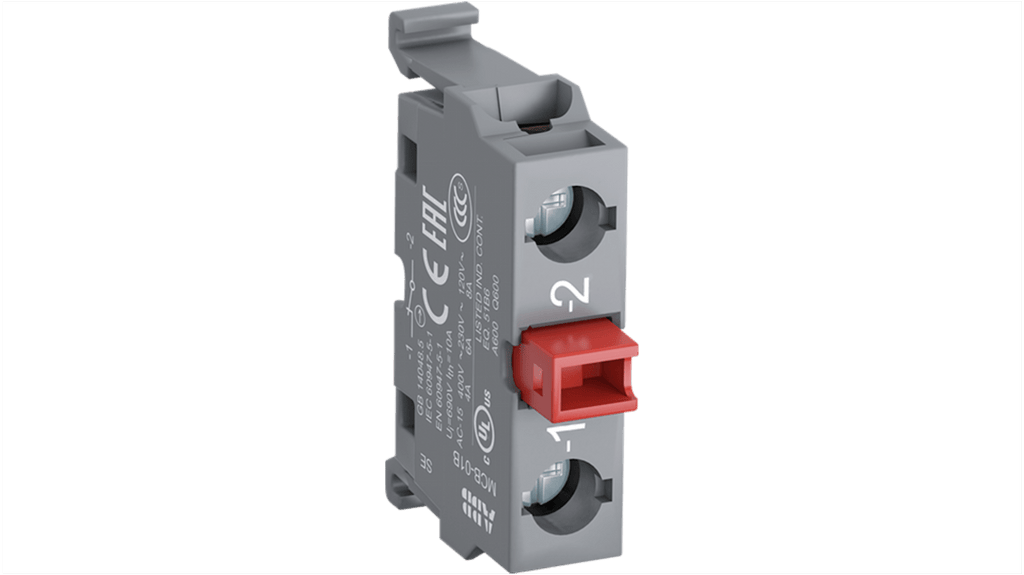 Blocco contatti modulare ABB, configurazione 1 N/A + 1 N/C, tensione nominale 690V, serie MCB, morsetti a vite, non illuminato, compatibile con MP1, MP2, MP3, MP4 e MPD.