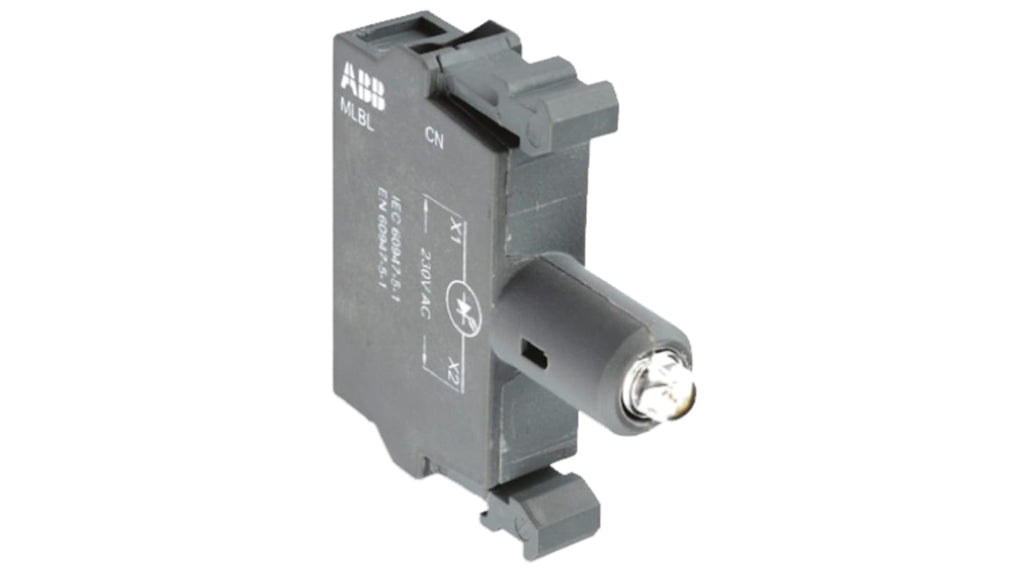 Blocco contatti luminoso con LED integrato, tensione nominale 230 V, tipo di illuminazione LED, montaggio anteriore, funzione integrata per evitare l'illuminazione da corrente di dispersione. Parte della gamma modulare ABB da 22 mm, include blocchi lampada e accessori. Collare di fissaggio/corpo non incluso, LED inclusi. Codice costruttore 1SFA611621R1071 MLBL-07R.