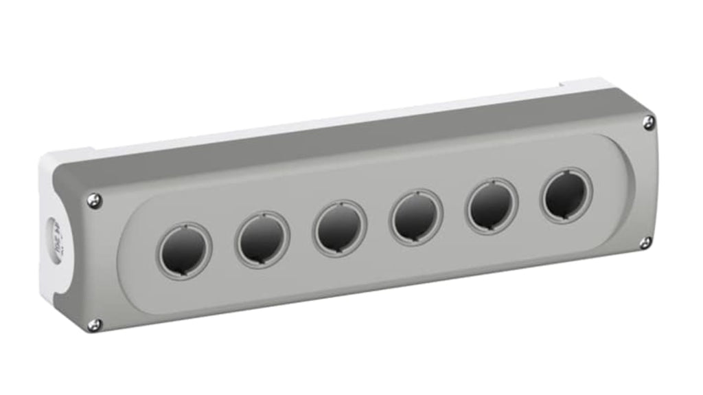Contenitore stazione di controllo compatto, modello ABB MEP6, 6 fori, diametro foro 22.5mm, colore grigio, materiale plastica, grado di protezione IP66.