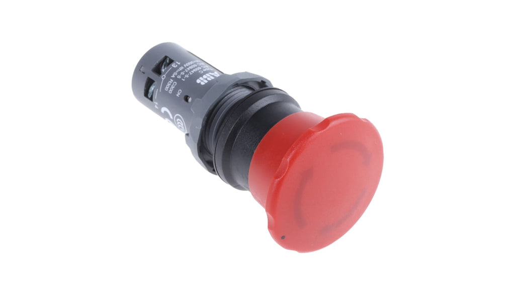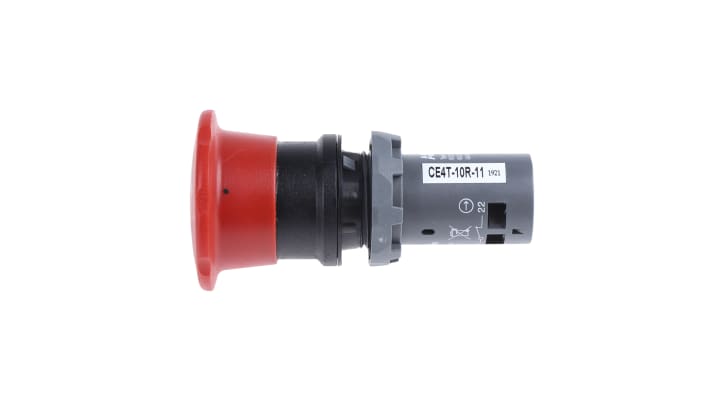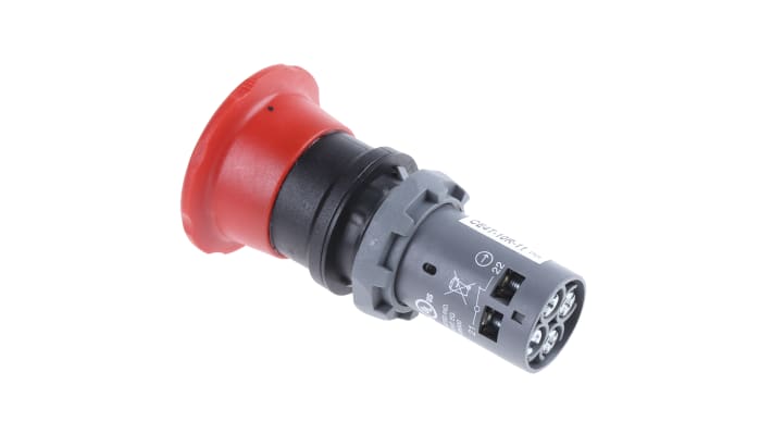 Pulsante di arresto di emergenza ABB, montaggio a pannello, diametro foro 22.5mm, configurazione contatto 1 NA + 1 NC, attuazione a pulsante con rilascio a rotazione, grado di protezione IP69K, colore rosso, testa a fungo di diametro 40mm, materiale in policarbonato, tensione nominale 300V, profondità 73mm, larghezza 40mm, altezza 40mm, serie 1SFA.