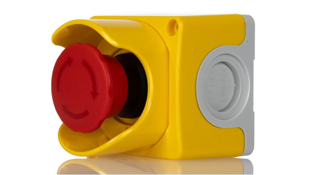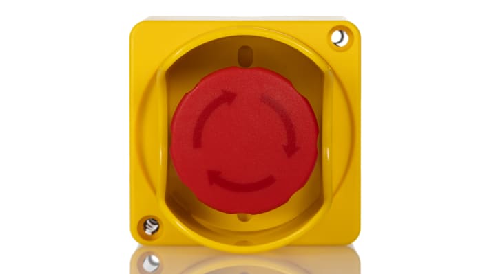 Contenitore ABB, custodia in plastica gialla, diametro foro 40 mm, 1 foro, protezione IP66, IP67, IP69K, dimensioni 80 mm x 65 mm x 65 mm, temperatura operativa da -25 a +70 gradi Celsius, compatibile con arresto di emergenza a fungo da 40 mm, adatto per montaggio orizzontale, progettato per applicazioni industriali e sistemi automatizzati. Codice costruttore 1SFA619821R2001 CEPY1-2001.