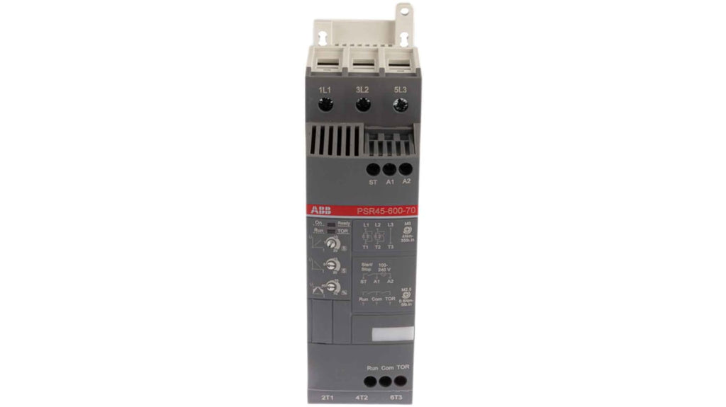 Avviatore soft-start ABB, 3 fasi, 22 kW, 600 V c.a., IP10, IP20. Soft Starter PSR, potenza nominale 22 kW, corrente nominale 45 A, design compatto per spazi ridotti, 10 avviamenti per ora, 20 con ventola ausiliaria, relè di segnalazione Run, segnale di uscita TOR per taglie da 25 A. Dimensioni: 153 mm x 54 mm x 187 mm. Codice costruttore 1SFA896111R7000.