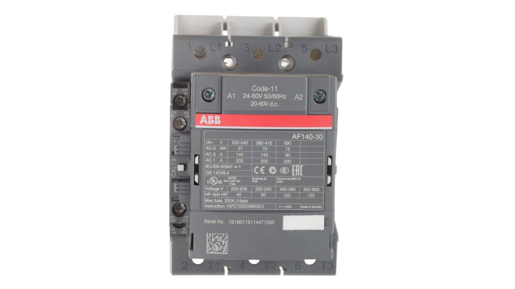 Contattore ABB, serie AF, 3 poli, 3 NA, 200 A, 75 kW, bobina 24 V ca/cc, tensione nominale contatto 690 V c.a., corrente nominale 200 A, configurazione stato normale 3 NA, 2 contatti ausiliari, terminazione ad anello ad aletta, dimensioni 150 mm x 90 mm x 126 mm, temperatura operativa da -40°C a +70°C, conforme a IEC 60947-1/60947-4-7 e EN 60947-1/60947-4-1.