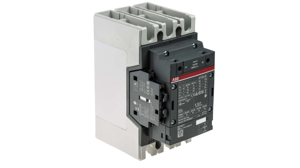 Contattore tripolare ABB, serie AF, 275 A, 90 kW, 3 contatti normalmente aperti, tensione bobina 230 V ca, tensione nominale contatto 690 V c.a., dimensioni 152 x 105 x 196 mm, temperatura operativa da -40 a +70 gradi, due contatti ausiliari, protezione integrata contro sovratensioni, conforme a IEC 60947-1/60947-4-7. Codice costruttore 1SFL487002R1311.