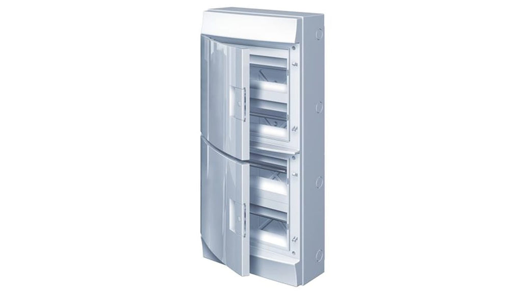 Unità di protezione MISTRAL65, 48 vie, 125A, custodia in plastica, grado di protezione IP65, dimensioni 735 x 320 x 155mm, porta trasparente blu petrolio con apertura a 180°, design simmetrico per reversibilità, telaio estraibile per cablaggio facilitato, compatibile con morsettiere dedicate, installazione rapida di MCB e MCCB ABB, tappi di chiusura a innesto per protezione di classe II.
