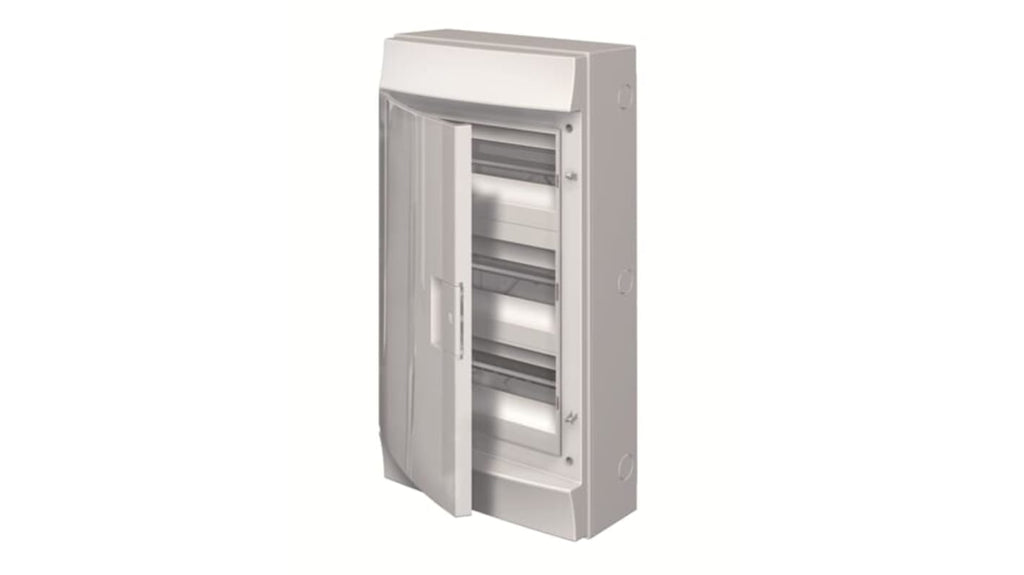 Unità per utenze civili, montaggio in superficie, grado di protezione IP65, resistenza alla polvere e all'acqua, custodia in plastica opaca, dimensioni 600 mm x 320 mm x 155 mm, classe di protezione isolata (classe II), codice costruttore 1SLM006500A2116, marchio ABB, serie H65P12X310750.