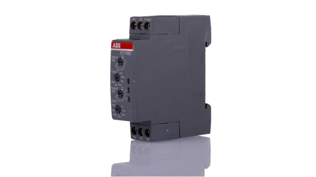 Relè timer ABB, intervallo di tempo 0,05 s - 100 h, configurazione SPDT, montaggio su guida DIN, tensione di alimentazione 24 - 240 V CA, corrente massima 4 A, grado di protezione IP20, temperatura operativa -20 °C a +60 °C, terminale a vite, dimensioni 17,5 mm x 63 mm x 63 mm, serie CT-C, funzione generatore di impulsi.