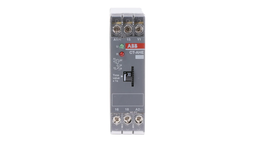Timer relay per guida DIN, intervallo di temporizzazione 0.3 a 30 secondi, 1 polo, configurazione SPDT, tensione di alimentazione 24V ca/cc, corrente massima 4A, tensione massima 250V, contatti in ossido di cadmio argento, larghezza 22.5 mm, profondità 78 mm, lunghezza 78.5 mm, temperatura operativa da -20 a +60 gradi Celsius, segnalazione a 2 LED, standard GOST-R, CUL-US, GL, C-Tick.