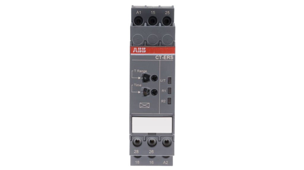 Timer ritardato all'eccitazione serie CT-ERS, tensione di alimentazione 24-240 V ca/cc, intervallo di temporizzazione 0,05 s a 300 h, 2 poli DPDT, montaggio su guida DIN, larghezza 22,5 mm, corrente massima 4 A, tensione massima 300 V ca, tecnologia di collegamento a vite o Easy Connect, 2 LED di stato, conforme a UL 508, CE, C-Tick.