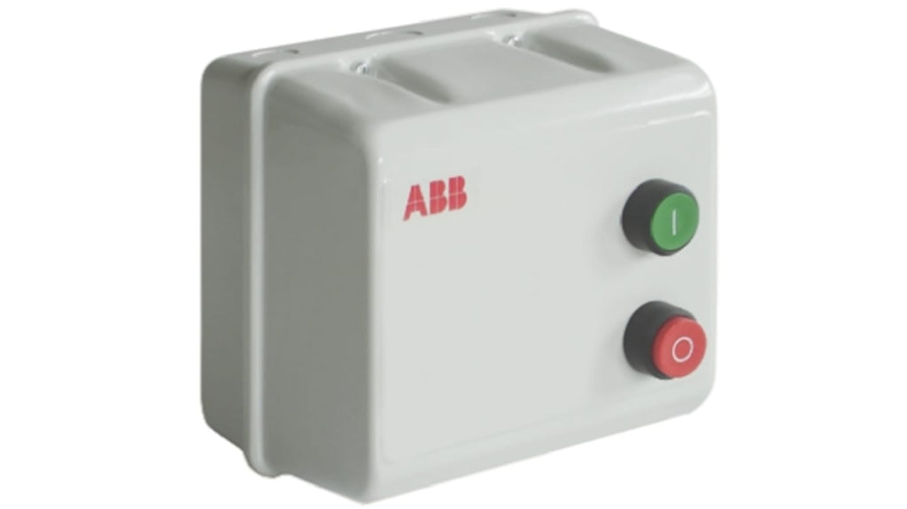 Starter DOL automatico per motori trifase, potenza nominale 7,5 kW, tensione 400 V c.a., grado di protezione IP55. Contenitore in acciaio, design sottile, installazione semplificata grazie all'ampio spazio di cablaggio. Dimensioni: lunghezza 184 mm, larghezza 184 mm, profondità 165 mm. Compatibile con sovraccarichi della serie TF42. Codice costruttore 1TVC230070S5699, marchio ABB.