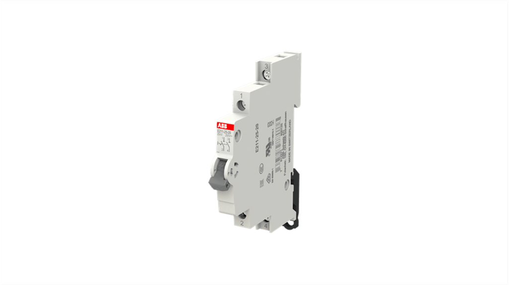 Interruttore automatico RCCB, 2 poli, 25 A, progettato per sistemi elettrici a 250 o 400 VAC, 2 contatti normalmente aperti, larghezza modulo 0,5, colore grigio, adatto per applicazioni residenziali e commerciali. Specifiche: tipo interruttore automatico, amperaggio 25 A, tensione nominale 400 V, serie E211.