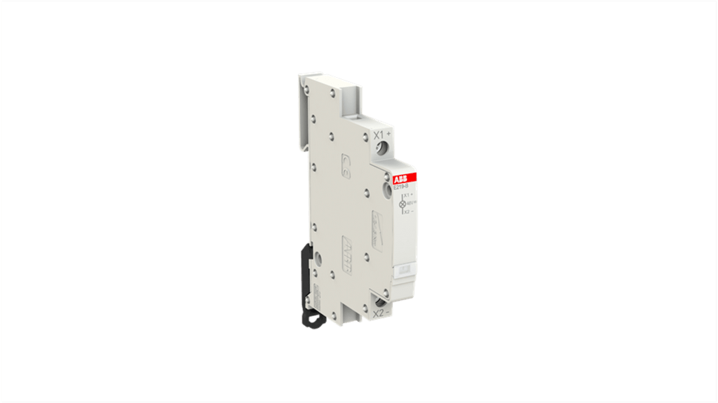 Indicatore luminoso con LED esente da manutenzione, tensione nominale da 12 a 48 V AC/DC, potenza 0,47-1 W, durata 50000 ore, montaggio su guida DIN, colore bianco, grado di protezione IP20, due LED per indicazione affidabile, serie E219. Codice costruttore 2CCA703420R0001, marchio ABB.