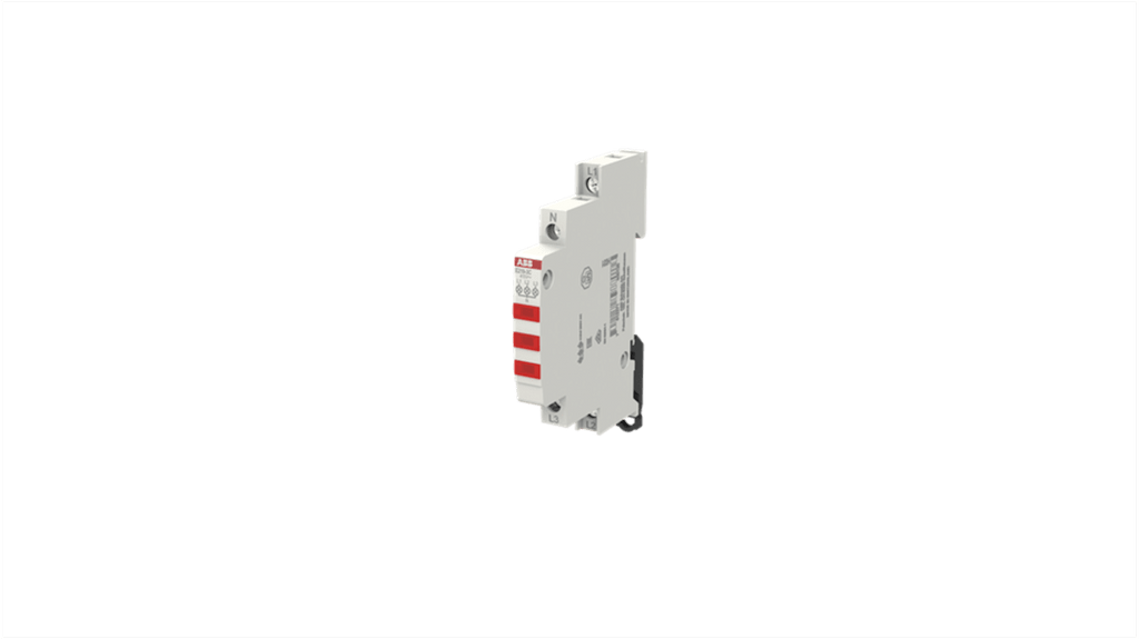 Indicatore luminoso per guida DIN. Tensione nominale 230V ca, doppio LED rosso per maggiore visibilità, conduttore in rame massiccio, protezione IP20. Progettato per applicazioni elettriche, serie E219.