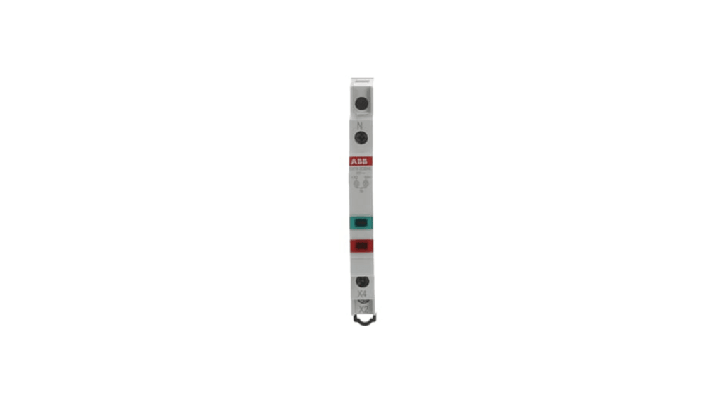 Indicatore luminoso per guida DIN. Tensione nominale 48 V CA, LED rosso e verde, larghezza modulo 0,5, contatti a doppia interruzione, sigillabile nelle posizioni On e Off, protezione IP20, conforme alle normative RoHS e REACH, adatto a varie applicazioni. Marchio ABB, codice costruttore 2CCA703911R0001.