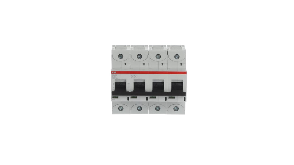 Interruttore automatico a 4 poli per fotovoltaico, amperaggio 63A, capacità di interruzione massima 1,5 kA, tensione fino a 1500V c.c., meccanismo di scatto termico e elettromeccanico, grado di protezione IP20, classe di limitazione dell'energia 3, temperatura operativa da -25 a 60 gradi Celsius, montaggio su guida DIN, modello S804PV-SD63, serie S800PV.