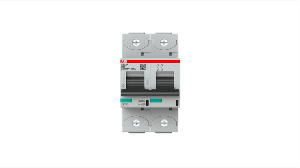 Interruttore magnetotermico bipolare, 80A, Tipo D, serie S800, capacità di interruzione 36 kA, tensione nominale 400-690 V, montaggio su guida DIN, temperatura di esercizio -25 a 60 °C, profondità 88.5 mm, conforme a EN 60898-1 e IEC 60947-2, certificato CCC, EN45545 e IEC61373. Compatibile con terminazioni ad anello o a gabbia, ampia varietà di accessori disponibili.