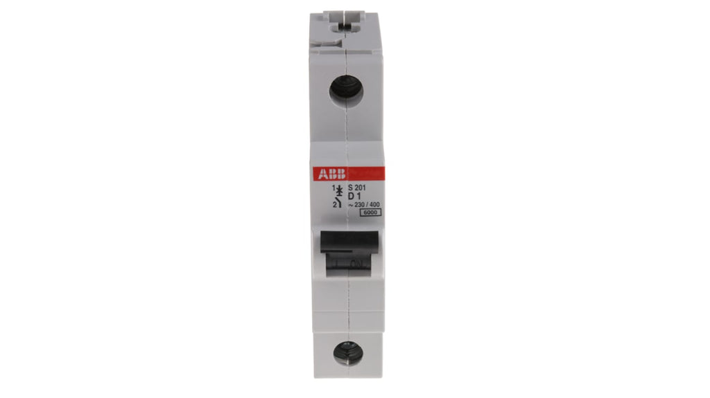 Interruttore magnetotermico ABB 1P 1A 6 kA, Tipo D, MCB della serie S200, corrente nominale 1 A, tensione c.a. 253 V, tensione c.c. 72 V, capacità di interruzione 6 kA, montaggio su guida DIN, dimensioni 17.5 mm x 88 mm x 76 mm, meccanismo di attivazione termico, protezione contro cortocircuiti, conforme agli standard IEC/EN, applicabile in contesti commerciali e residenziali.