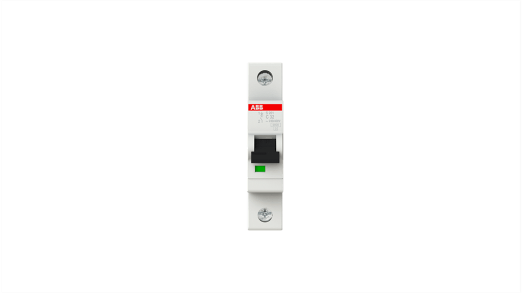Interruttore magnetotermico ABB 1P 32A, Tipo C, meccanismo di scatto termico ritardato e scatto elettromeccanico, grado di protezione IP20, montaggio su guida DIN, amperaggio 32A, numero di poli 1P, serie S200, gamma System Pro M Compact, esclusivo terminal doppio brevettato con viti prigioniere, prestazioni elevate per applicazioni marine e industriali.