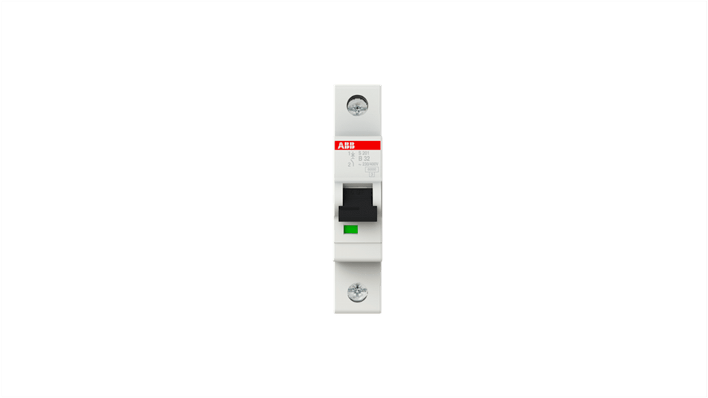 Interruttore magnetotermico ABB 1P 32A, Tipo B, serie S200, montaggio guida DIN, grado di protezione IP20, meccanismo di scatto termico ritardato per sovraccarichi, meccanismo di scatto elettromeccanico per cortocircuiti, terminale doppio brevettato per cavi fino a 35 mm2, indicazione chiara della posizione del contatto, colore rosso per accensione, colore verde per spegnimento. Codice costruttore 2CDS251001R0325 S201 B 32A - 10 KA.