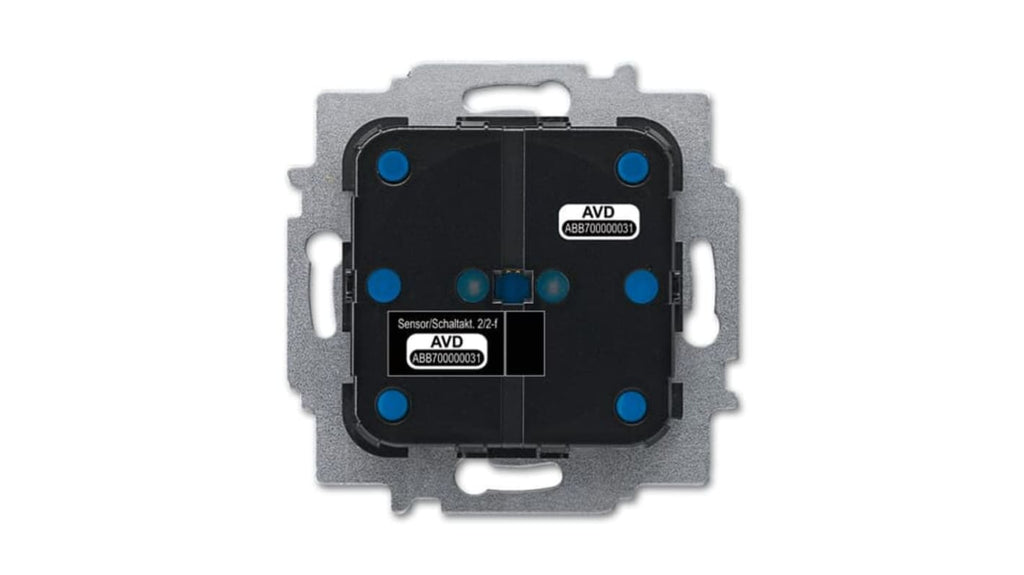 Modulo I/O per automazione ABB free@home, attuatore sensore/interruttore 2/2gang wireless, commutazione consumatori a 230 V ca, comunicazione wireless, interruttore integrato, collegamento a 3 fili con conduttore neutro, ingresso unità di prolunga 230 V On/Off, ganci di fissaggio inclusi, grado di protezione IP20, montaggio a filo, dimensioni 2,79 x 2,79 x 1,79 poll.