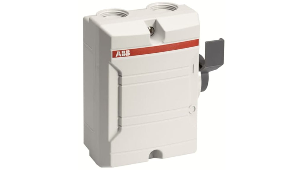Sezionatore con interruttore, 2 poli, corrente massima 25A, potenza nominale 3,7kW, montaggio superficiale, grado di protezione IP65, contenitore in plastica resistente agli urti IK08, ingressi cavo filettati per 2 cavi paralleli, impugnatura bloccabile, coperchio con blocco interno, passacavi a membrana inclusi, disponibile in grigio, giallo e bianco. Codice costruttore 2CMA142401R1000 BW 225 W DP.