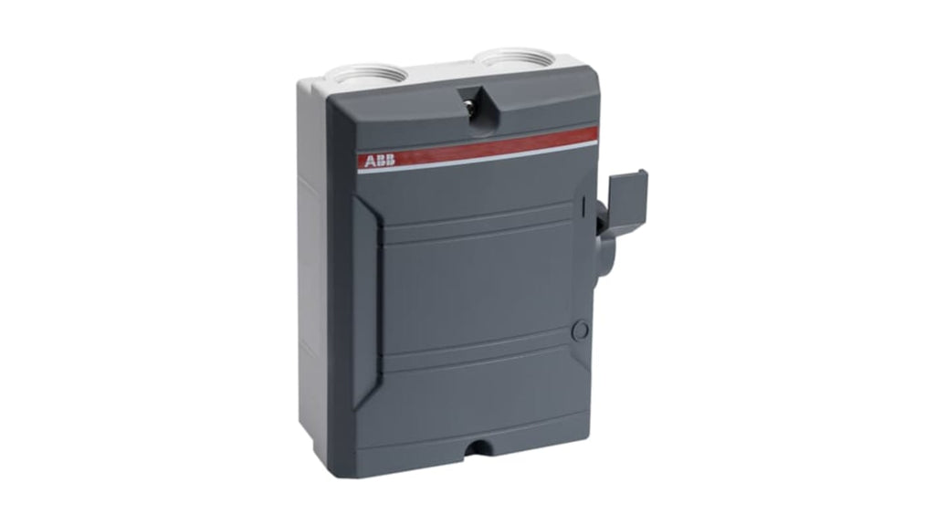 Sezionatore con interruttore a 4 poli, corrente massima 40A, montaggio a vite, grado di protezione IP65, costruito in policarbonato, maniglia bloccabile, ingressi cavi filettati per 2 cavi paralleli, terminale neutro fisso e terminale PE commutabili, coperchio incastrato, protetto dai raggi UV, adatto per uso interno ed esterno, gommini a membrana in dotazione (IP54).