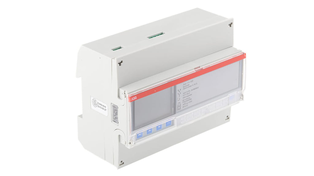 Contatore di energia trifase ABB A44, display LCD a 7 cifre, corrente nominale 1 A, montaggio su guida DIN, dimensioni 97 x 123 x 65 mm, peso 350 g, temperatura operativa da -40 a +70 gradi, grado di protezione IP20, precisione 1%, uscita impulsi, comunicazione seriale, porta infrarossi, approvazioni IEC. Adatto per installazioni fino a 80 A, collegato a trasformatore.