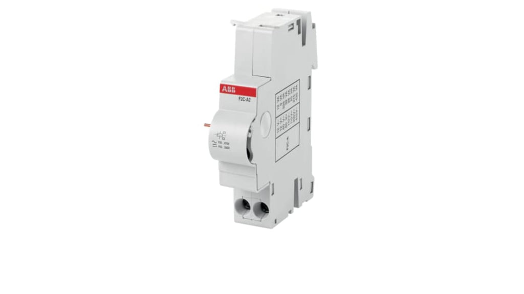Innesco shunt per RCD, tensione nominale di controllo 12 V, compatibile con RCCB serie F200 e RCBO DS201 e DS202C, utilizzo con MCB serie SN201 tramite modulo di interfaccia SN201-IH, operante in gamma da 12 a 60 V c.a. o c.c., codice costruttore 2CSS200933R0011 F2C-A1, marchio ABB.