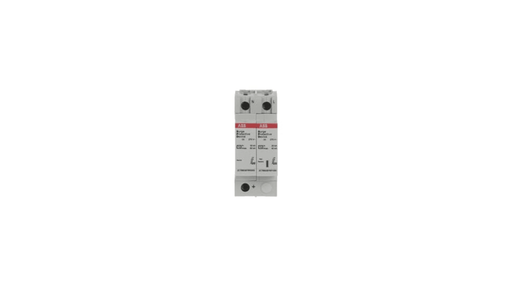 Dispositivo di protezione contro le sovratensioni, tensione nominale di protezione 1,5kV, conforme agli standard IEC 61643 11, tensione nominale CA di 230 o 400V, corrente nominale di impulso 2kA, capacità di resistenza al cortocircuito 100kA, design compatto 35,6mm x 88mm x 58mm, montaggio su guida DIN, codice costruttore 2CTB803872R1100, marchio ABB.