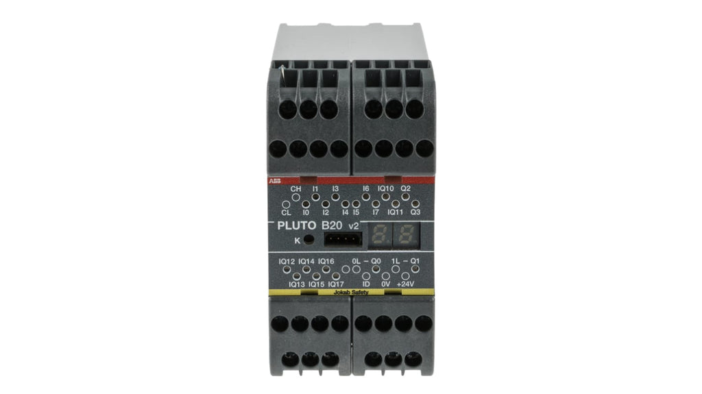 Controller di sicurezza ABB, tensione di alimentazione 24 V c.c., corrente nominale 1,5 A, 20 I/O, 8 ingressi di sicurezza, 4 uscite di sicurezza, categoria di sicurezza 4, grado di protezione IP20 e IP40, dimensioni 84 x 45 x 118 mm, montaggio su guida DIN, compatibile con sistemi bus a 2 fili, SIL 3.