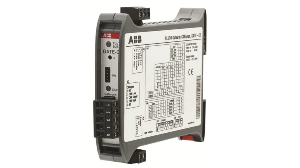 Gateway per comunicazione a 2 vie tra bus Pluto ed Ethernet, tensione di alimentazione 24 V CC, dimensioni 119 x 101 x 23 mm, peso 0,12 kg, serie GATE-C2, compatibile con Pluto Bus. Marchio ABB, codice costruttore 2TLA020071R8100.