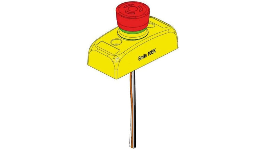 Pulsante di arresto di emergenza ABB Smile, montaggio a pannello, diametro foro 32mm, configurazione contatto 2NC, attuazione a pulsante, rilascio a rotazione, LED di indicazione stato, cavo da 1 metro dalla parte inferiore, colore rosso, serie Smile. Codice costruttore 2TLA030051R0600 SMILE 10 EK.
