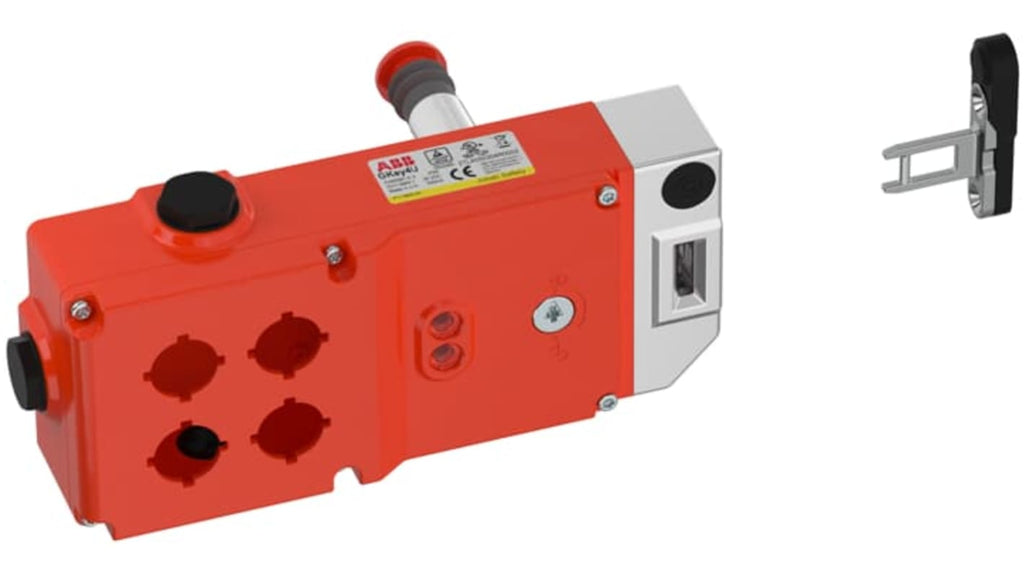 Interruttore di interblocco di sicurezza ABB, serratura di sicurezza "Gkey" con 4 posizioni, contenitore pressofuso, sgancio di fuga, funzione di sblocco manuale, montaggio su porte incernierate e scorrevoli, compatibile con aperture a sinistra e destra, progettato per linee robuste. Codice costruttore 2TLA050304R0002.