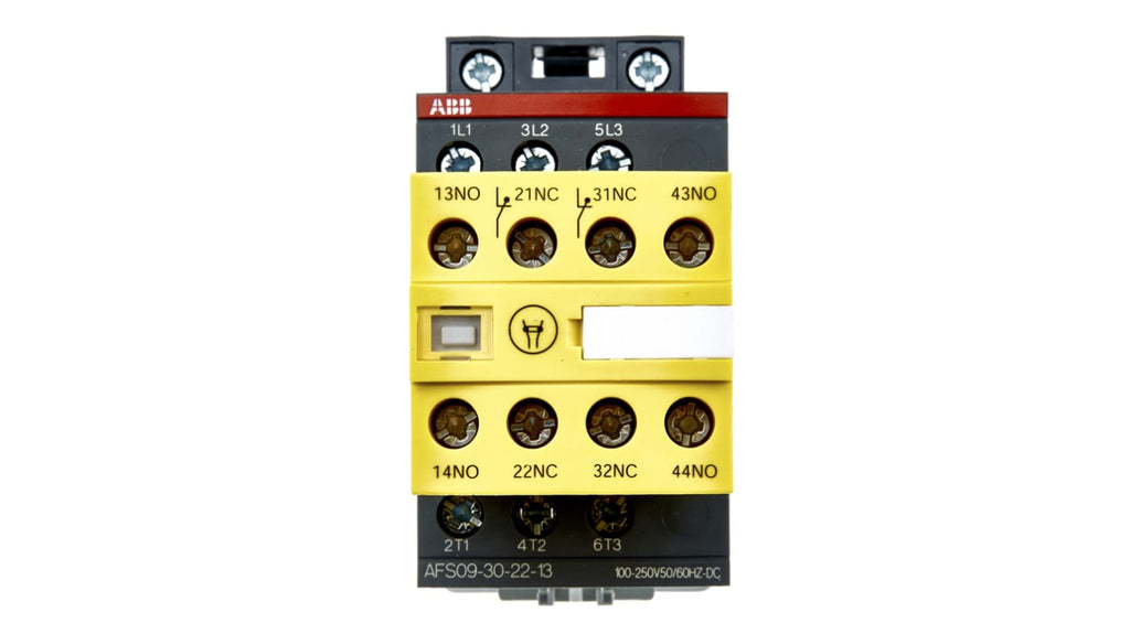 Contattore ABB Jokab, serie AFS, 3 poli, 3 NO, 25 A, 5,5 kW, bobina 100 a 250 V c.a./c.c., 4 contatti ausiliari (2NO + 2NC), montaggio su guida DIN, morsetti a vite, lunghezza 110,5 mm, temperatura operativa da -40 a +70 gradi, tensione nominale contatto 600 V c.a., frequenza massima 3600 cicli/ora, tensione di resistenza agli impulsi 6 kV. Codice costruttore 1SBL137082R1322 AFS09-30-22-13.