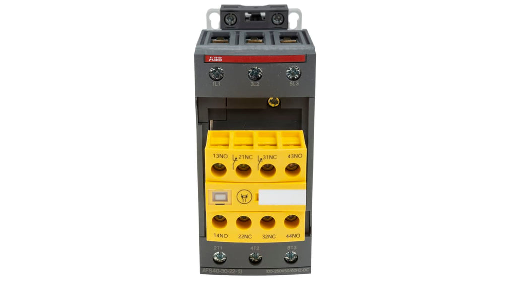 Relè contattore di sicurezza ABB Jokab AFS, 3 poli, 3 NO, tensione bobina 100 a 250 V c.a./c.c., corrente nominale contatto 70 A, tensione nominale contatto 600 V c.a., dimensioni 55 mm x 144 mm x 119.5 mm, temperatura operativa da -40 °C a +70 °C, certificazioni CSA C22.2 N°14, EN 60947-1/60947-4-1, IEC60947-1/60947-4-1, UL 508.