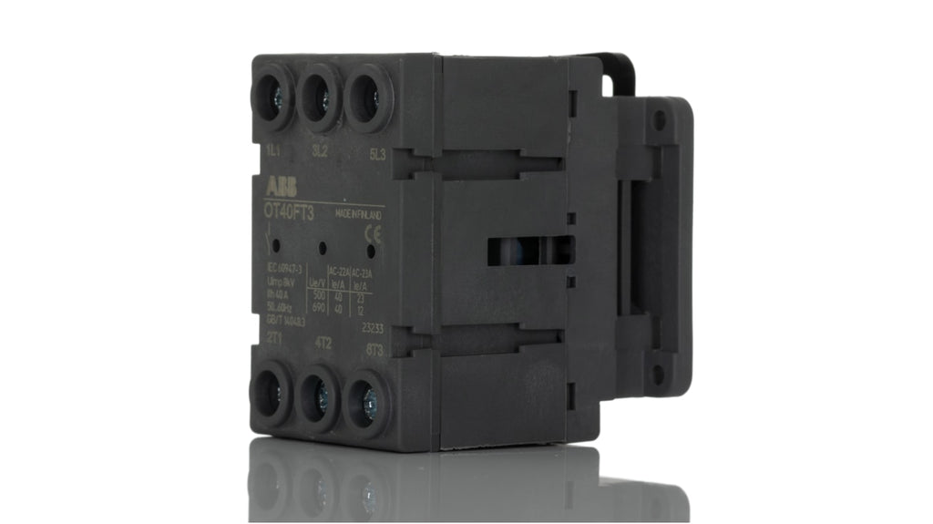 Interruttore isolante senza fusibile, 3 poli, corrente massima 40A, tensione nominale 750V ca, montaggio a pannello, grado di protezione IP20, collegamento a morsetto a vite, dimensioni 52x43x54 mm, peso 100 g, durata meccanica 20000 cicli, potenza nominale 11kW, portata interruttore 0,5kA, temperatura operativa massima +40°C, testato fino a 8 kV. Codice costruttore 1SCA104940R1001. Marchio ABB.