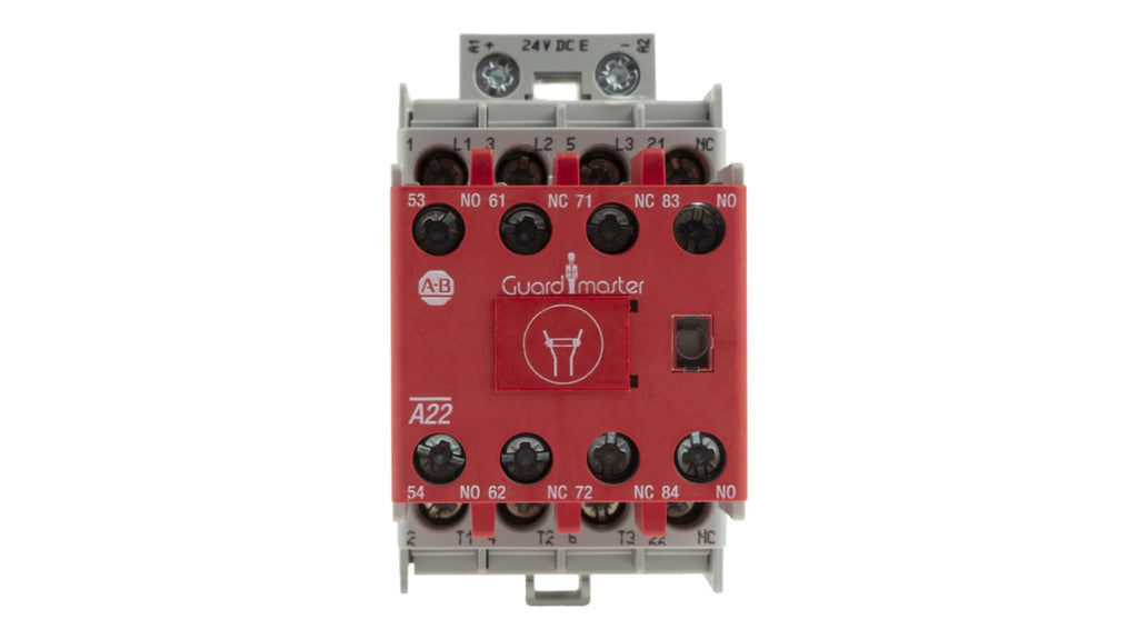 Contattore di sicurezza Allen Bradley, 3 poli, 2NO + 3NC, corrente nominale 12 A, tensione bobina 24 V c.c., tensione nominale contatto 690 V c.a., dimensioni 81 x 45 x 125,5 mm, temperatura operativa da -25 a +60 gradi Celsius, certificazioni CE, UL, CSA, RINA, IEC 60947, EN 60947. Design compatto, copertura protettiva, contatti ausiliari placcati oro.