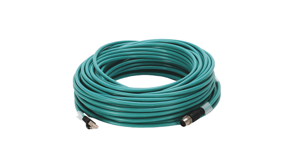 Cavo Ethernet Cat 5e, lunghezza 30m, con terminazione, tipo schermatura lamina e treccia, connettore M12 dritto e RJ45 dritto, grado di protezione IP67, temperatura d'esercizio da -40 a 75 gradi Celsius, senza alogeni, colore guaina verde. Progettato per ambienti difficili, garantisce elevata immunità al rumore e perdita di ritorno. Codice costruttore 1585D-M4UBJM-30. Marchio Allen Bradley.