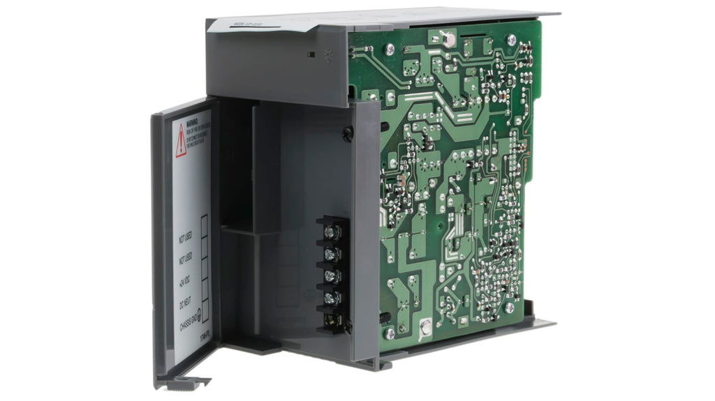 Alimentatore PLC per serie SLC 500, corrente di uscita 3,6 A, tensione 100/240 Vac e 24 Vdc, dimensioni 74 x 140 x 145 mm, temperatura operativa da 0 a 60 gradi Celsius, montaggio laterale con 2 viti, protezione fusibili, indicatore LED per stato funzionamento, conforme a standard IEC, CISPR, UL e CE.