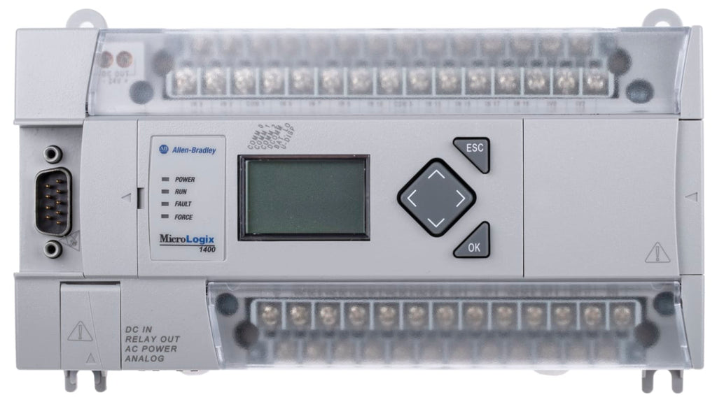 Modulo I/O PLC Allen Bradley, serie 1766, per uso con Serie MicroLogix 1400, digitale. 12 ingressi digitali veloci 24V c.c., 8 ingressi digitali normali 24V c.c., 12 uscite digitali a relè, 4 ingressi analogici 12 bit, 2 uscite analogiche 12 bit. Tensione di alimentazione 120/240 V c.a., montaggio su guida DIN, temperatura operativa fino a 60°C. Dimensioni 87 x 180 x 90 mm.
