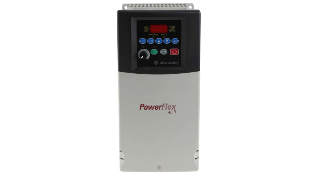 Inverter trifase Allen Bradley PowerFlex 40, potenza nominale 5,5 kW, tensione di alimentazione 400 V c.a., corrente nominale 12 A, frequenza di uscita 400 Hz, grado di protezione IP20, interfaccia Ethernet, pannello di controllo incluso, dimensioni 260 mm x 180 mm x 130 mm, per uso con motori in c.a., comunicazione ModBus. Codice costruttore 22B-D012N104.