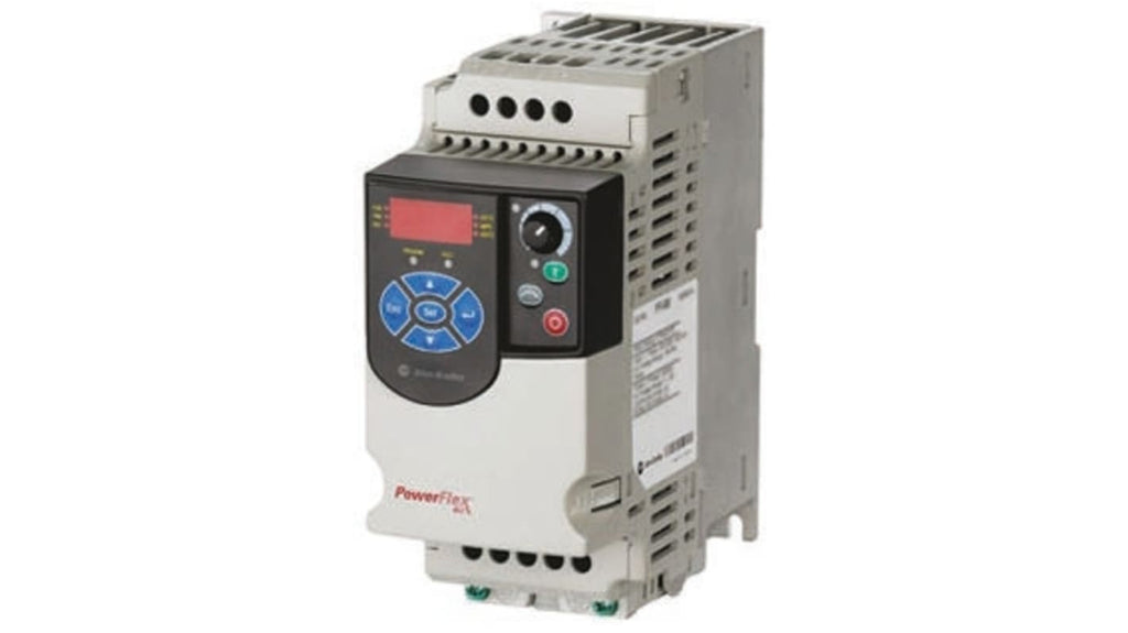 Inverter trifase Allen Bradley, 11 kW, 400 V c.a., 24 A, frequenza di uscita 400 Hz, serie PowerFlex 4M, montaggio a pannello, grado di protezione IP20, comunicazione ModBus, filtro integrato, pannello di controllo incluso, dimensioni 260 mm x 130 mm x 180 mm, temperatura operativa fino a 50 °C con spaziatura minima, compatibile con motori in c.a.