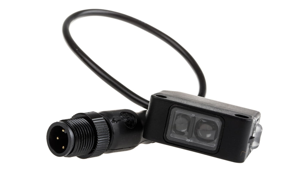 Sensore fotoelettrico rettangolare a fascio diretto, rilevamento fino a 10 m, uscita emettitore, con sorgente di luce infrarossa. Grado di protezione IP67, temperatura operativa da -20 a +60 gradi Celsius, tempo di risposta 1 ms. Alloggiamento in ABS, con indicatore di stato LED visibile a 360 gradi. Collegamento elettrico tramite connettore a 4 pin, distanza fori di montaggio 25,4 mm. Modello Bulletin 42JS VisiSight.